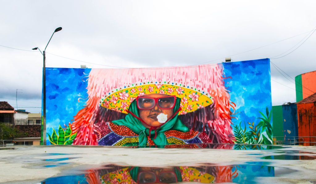 A ilustração, que tem as dimensões de 12 metros de altura e 18 de largura, busca representar a identidade afro-indígena da Zona da Mata Norte e sintetiza a estética e a resistência dessa tradição reconhecida como Patrimônio Cultural Imaterial do Brasil pelo Instituto do Patrimônio Histórico e Artístico Nacional (Iphan).